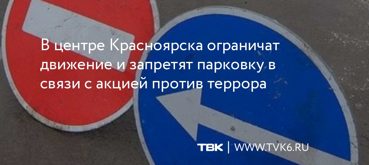 В центре Красноярска ограничат движение и запретят парковку в связи с акцией против террора