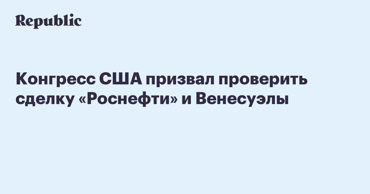 Члены комитета Конгресса США по иностранным делам призвали Минфин страны проверить сделку между «Роснефтью» и венесуэльской PDSVA, следует из письма главе ведомства Стивену Мунчину, на которое обратило внимание РБК.