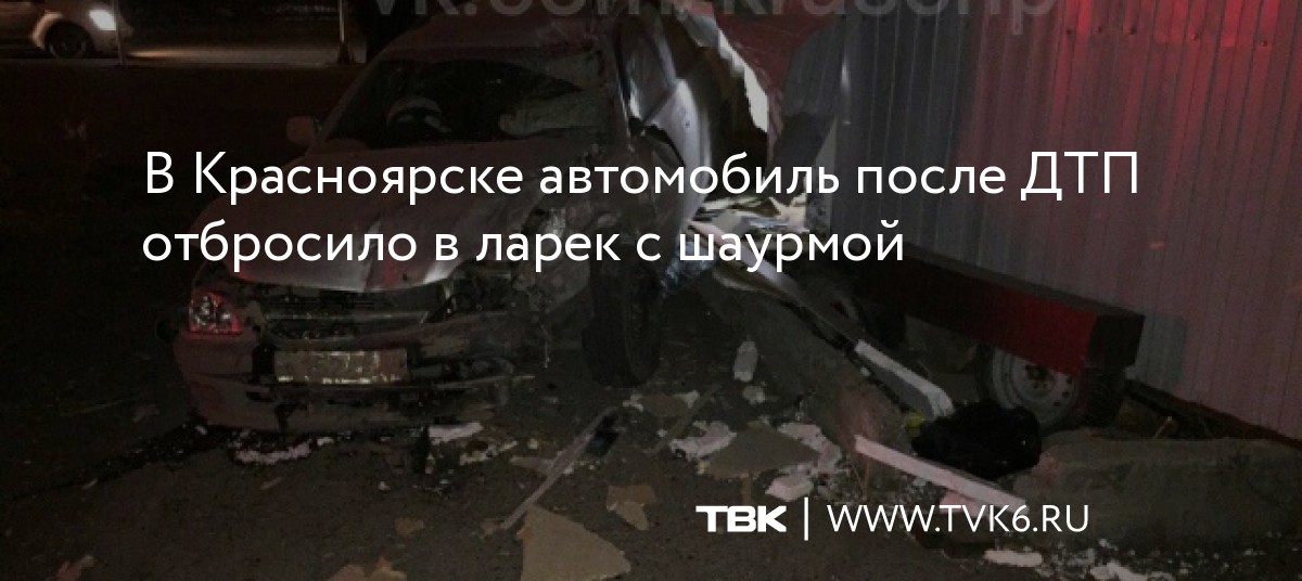 В Красноярске автомобиль после ДТП отбросило в ларек с шаурмой