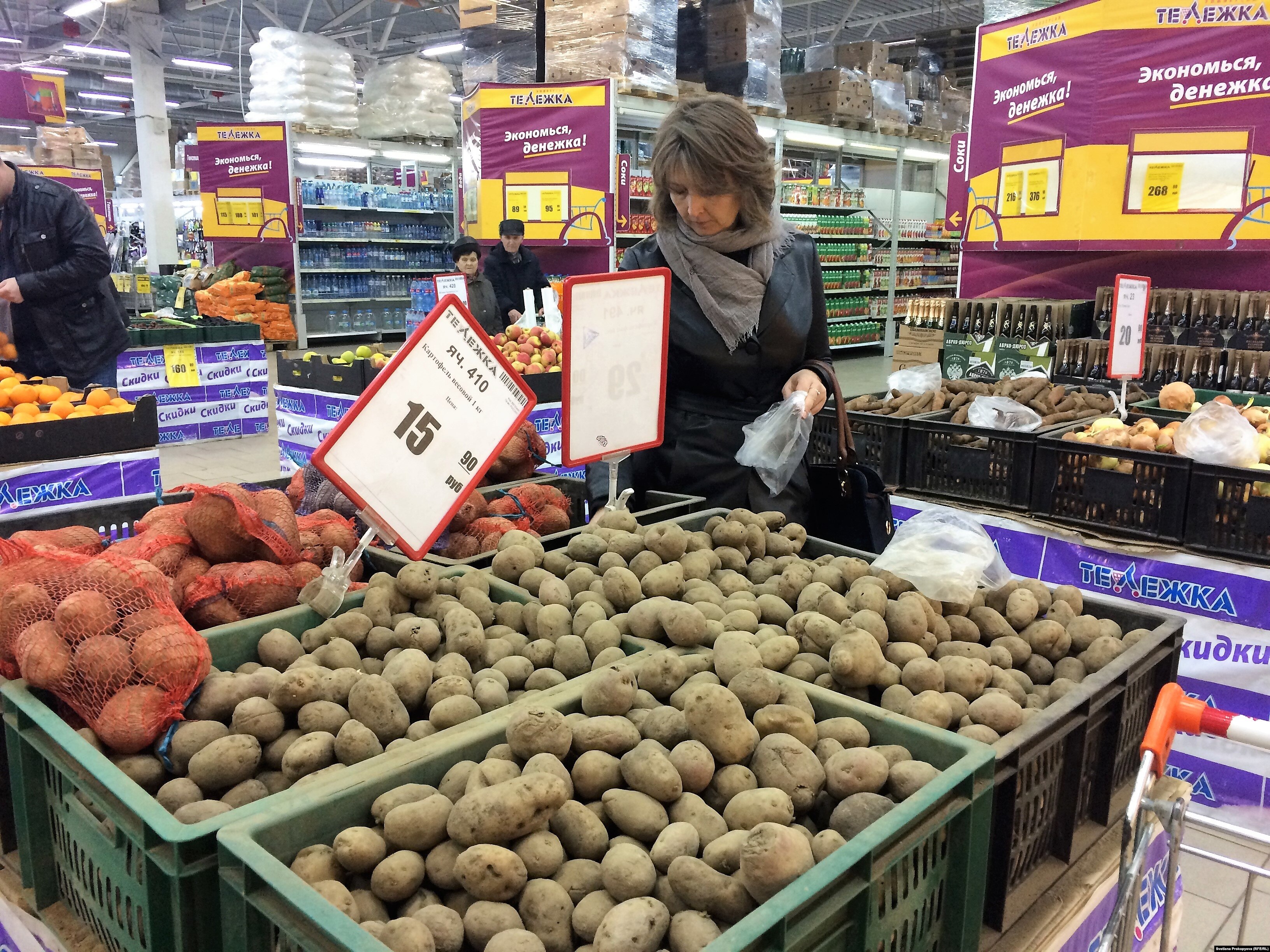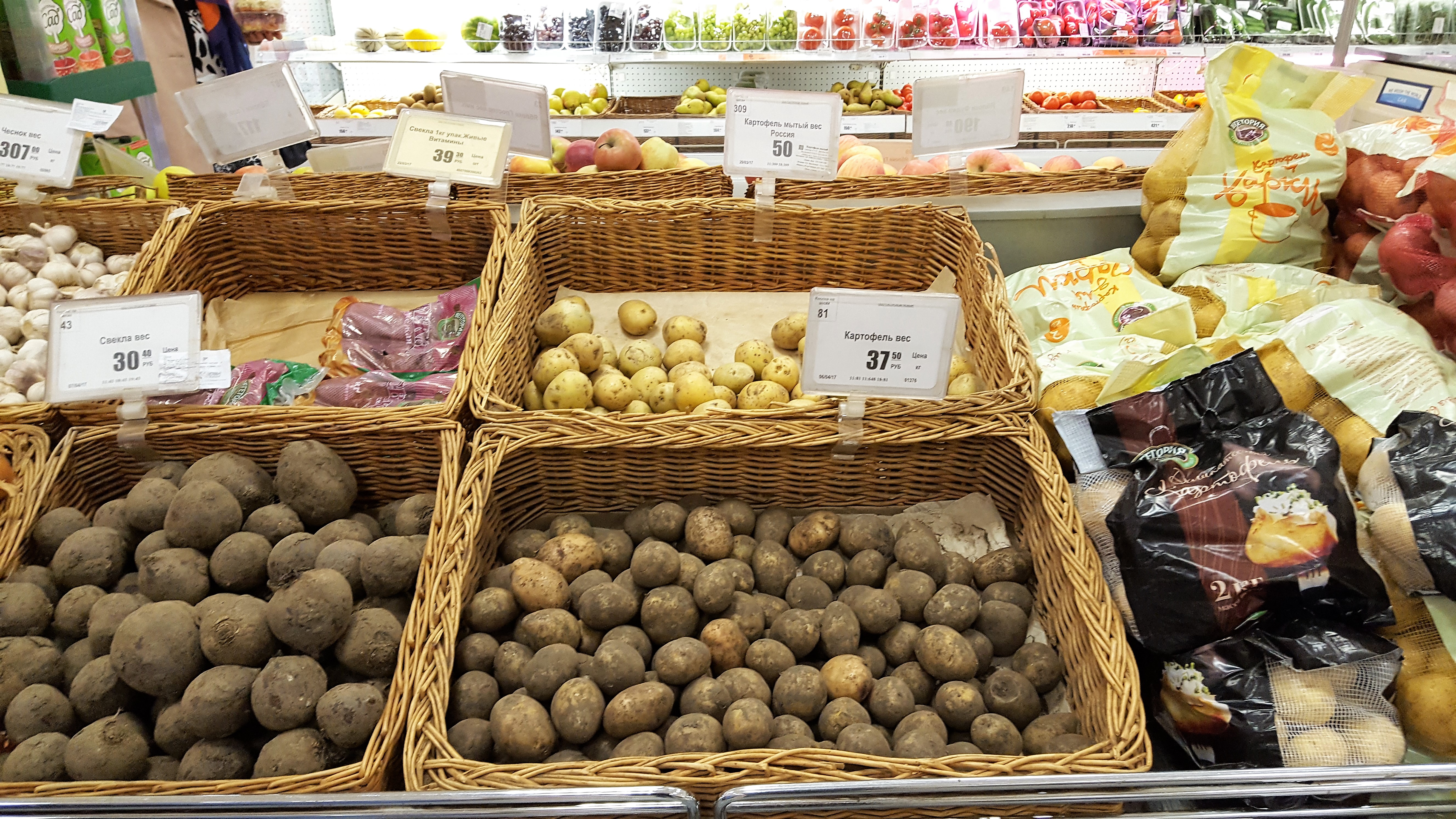 Официальная статистика утверждает, что цены на картофель с начала года в России растут. Наблюдения корреспондентов Радио Свобода это подтверждают – более того, можно сделать вывод, что дешевый картофель урожая прошлого года в магазинах уже заканчивается. Только с начала января в Москве килограмм российской продукции за месяц подорожал более чем на 8 процентов – с 24 до 26 рублей, к началу марта еще на 5,7 процента – до 27 с половиной рублей, а в апреле сразу на 26 процентов – почти до 38 рублей за килограмм. При этом такой картофель еще нужно поискать – в день "контрольной закупки" самым "бюджетным" вариантом был килограмм за 50 рублей и только спустя несколько часов на прилавки выбросили более дешевый. Примерно то же самое происходит и в Пскове: за первый месяц года цены на картофель цены там выросли почти на 13 процентов – почти до 14 рублей за килограмм. К началу марта они остались на прежнем уровне, но подскочили в апреле сразу почти на 12 процентов к предыдущему месяцу.