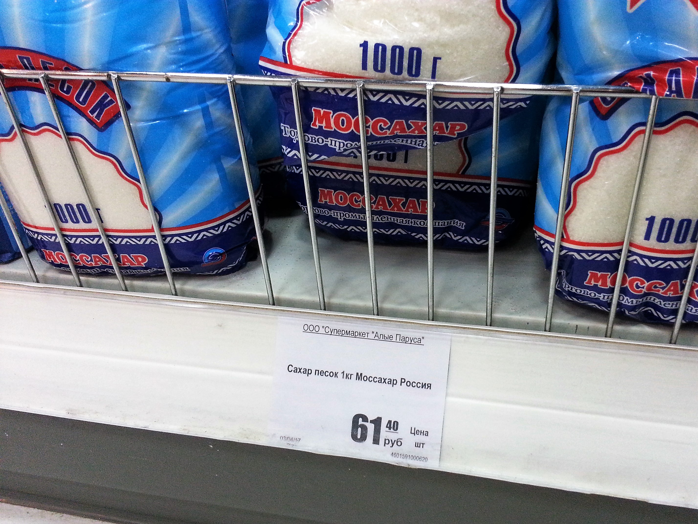 Цены на сахар (не тростниковый) в России практически не менялись до апреля. В Москве в феврале по сравнению с началом года они снизились на 1,8 процента – с 54 до 53 рублей за килограмм, в марте они опять выросли до 54 рублей. Но в начале апреля сахар в столице вдруг заметно подорожал – сразу на 12 процентов, почти до 61 с половиной рубля за килограмм. Иная картина в Пскове, где продукты в целом дешевле: к февралю белый сахар подешевел – с 43 до 42 рублей за килограмм, потом наверстал упущенный рубль. К началу апреля цены на него опять снизились – сразу до 38 рублей. Это более чем на 13 процентов ниже, чем в начале года.