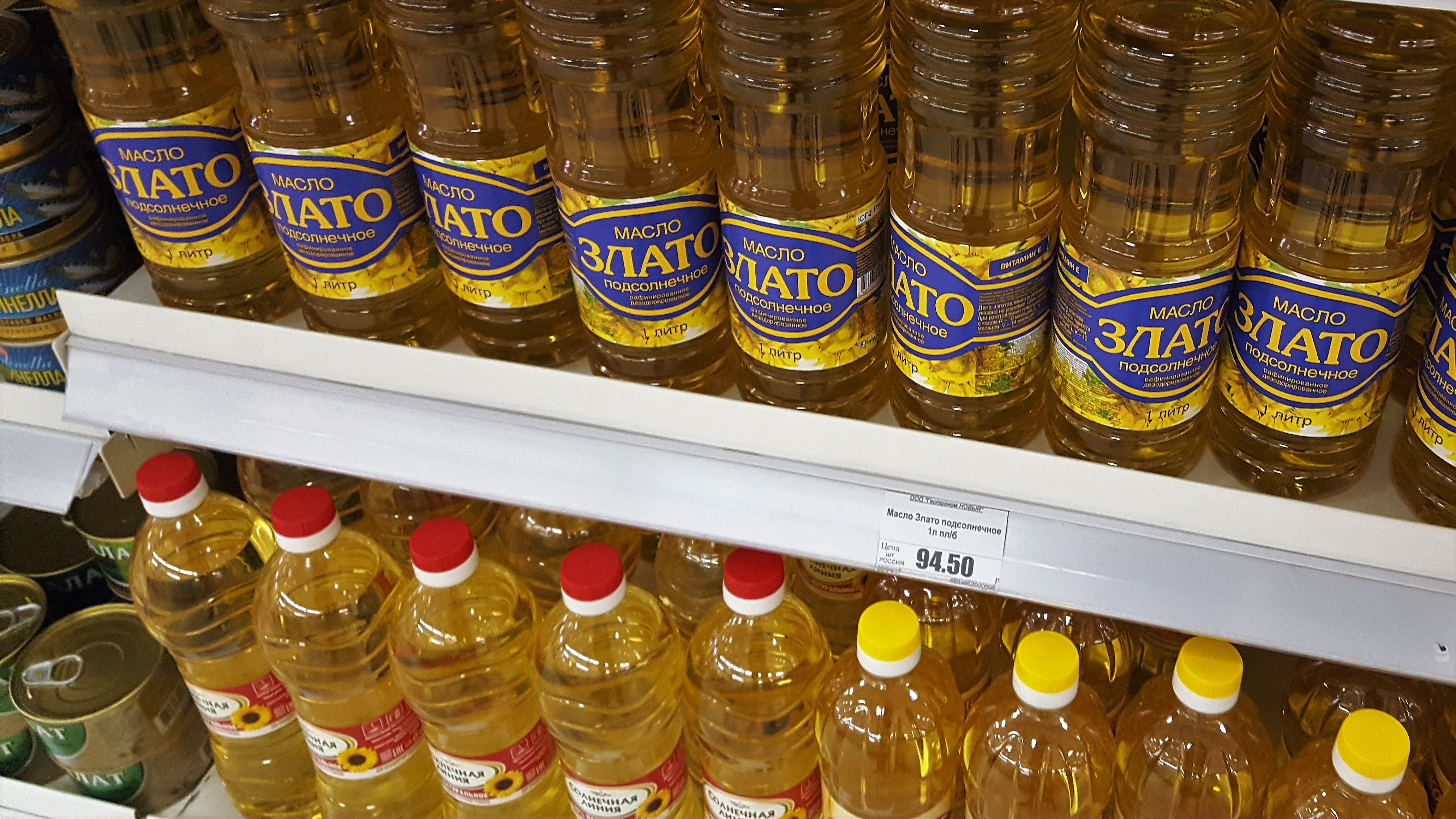 Цены на этот вид товара зависит от выбора производителя, стабильности поставок и скидочных акций, которые иногда устраивают сами магазины. В начале января в Москве в день "контрольной закупки" самое дешевое масло стоило 115 рублей за литр, через месяц – 119 рублей, а в начале марта – уже 111 рублей. В апреле снижение цен продолжилось, корреспонденту Радио Свобода удалось найти подсолнечное масло менее чем за 95 рублей за литр. Таким образом по сравнению с мартом его цена упала почти на 17 процентов, а с начала года – на 21,7 процента. В Пскове же доступное в магазине подсолнечное масло подорожало в первый месяц года почти 23 процента – с 70 до 86 рублей, но затем, наоборот, подешевело – примерно до 82 с половиной рублей. На этом же уровне цены остались и в апреле. Тем не менее с начала года рост цен на подсолнечное масло составил 15 процентов.