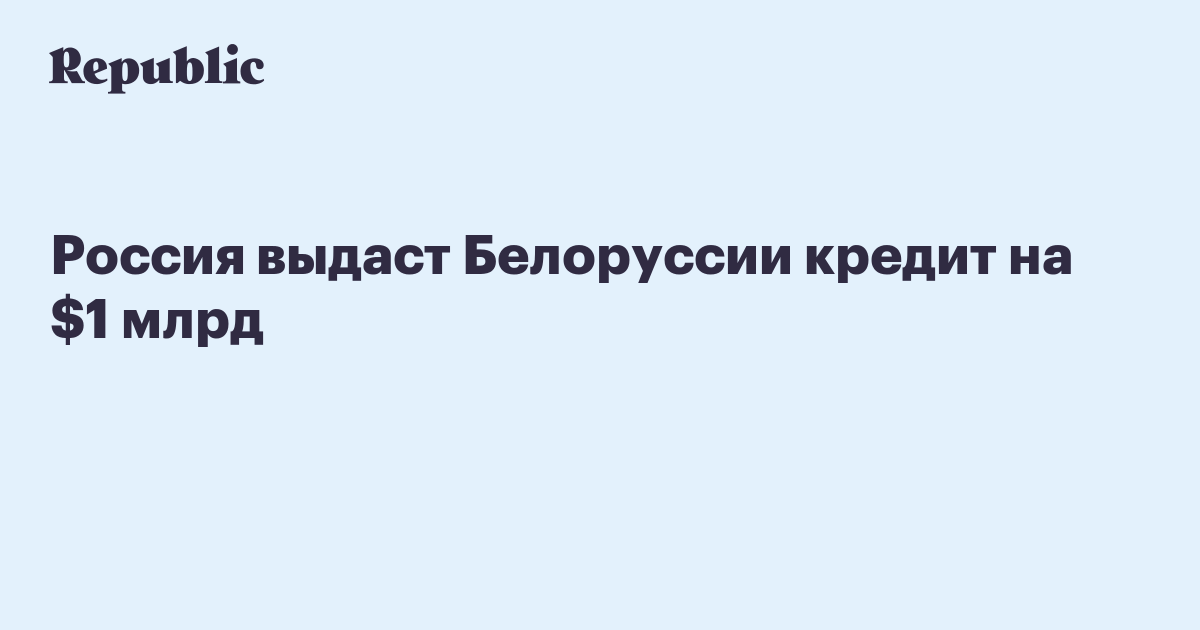 Россия выделит Белоруссии кредит на сумму до $1 млрд. Об этом в интервью телеканалу ОНТ заявил вице-премьер Белоруссии Владимир Семашко, сообщает «Прайм».