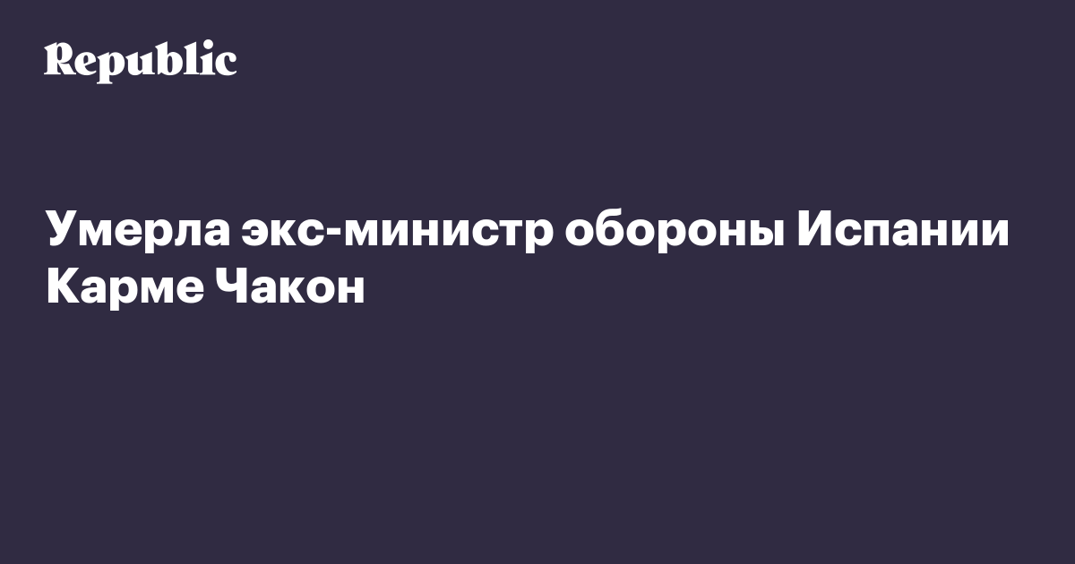 Первая женщина, занимавшая пост министра обороны Испании, Карме Чакон скончалась в воскресенье в возрасте 46 лет. Об этом сообщает испанская газета El Mundo.