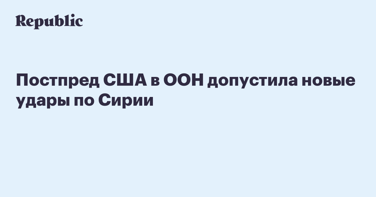 Постпред США при ООН Никки Хейли в интервью CNN заявила, что в случае необходимости американские военные смогут повторно нанести ракетные удары по Сирии.