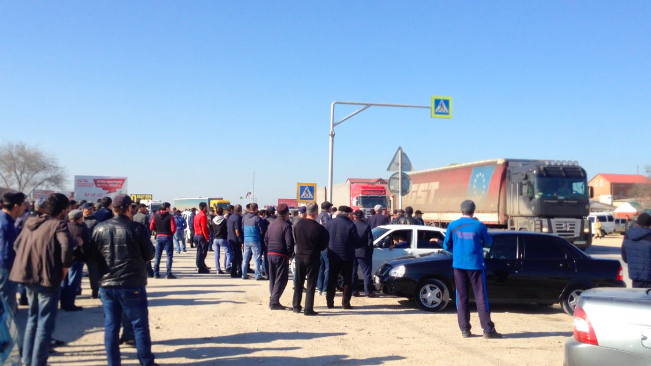 Замминистра транспорта Дагестана Якуб Худжаев (в центре), стачка 4 апреляФото: Милана Мазаева Якуб Худжаев утверждает, что никакого окружения бойцами Росгвардии, о котором пишут различные издания, не было. «Сообщение о том, что ОМОН окружил дальнобойщиков, появилось в пятницу. Каждую неделю в этот день мечети бывают битком набиты людьми, которые оставляют свои машины на проезжей части. Рядом с тем местом, где стоят дальнобойщки, проходит федеральная трасса, там же развилка и мечеть. Сотрудники силовых структур каждую неделю проводят работу по предотвращению дорожного коллапса. Приходят туда, требуют не оставлять автомобили на проезжей части, помогают ДПСникам расчищать дорогу. То же самое происходило и в ту пятницу, когда поднялся шум о Росгвардии».