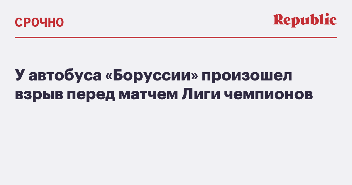 В Дортмунде около автобуса, в котором находились игроки футбольной команды «Боруссия», произошел взрыв. Об этом сообщается в твиттере команды.