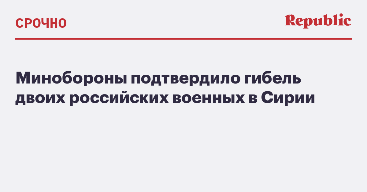 Минобороны подтвердило гибель двоих российских военных в Сирии