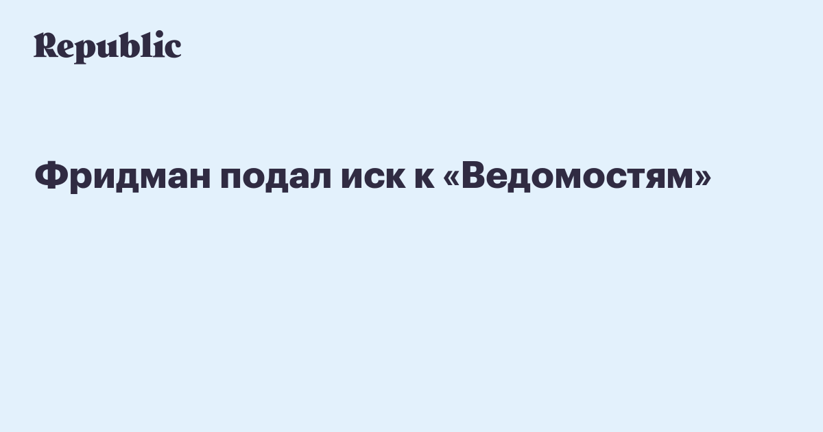 Иск зарегистрировали 10 апреля. Ответчиком выступит учредитель газеты, компания «Бизнес Ньюс Медиа» и журналист Иван Васильев. Главный юрист «Ведомостей» Владимир Румянцев рассказал, что Фридман также потребовал завести на Васильева уголовное дело о клевете. Журналиста уже вызывали на допрос.