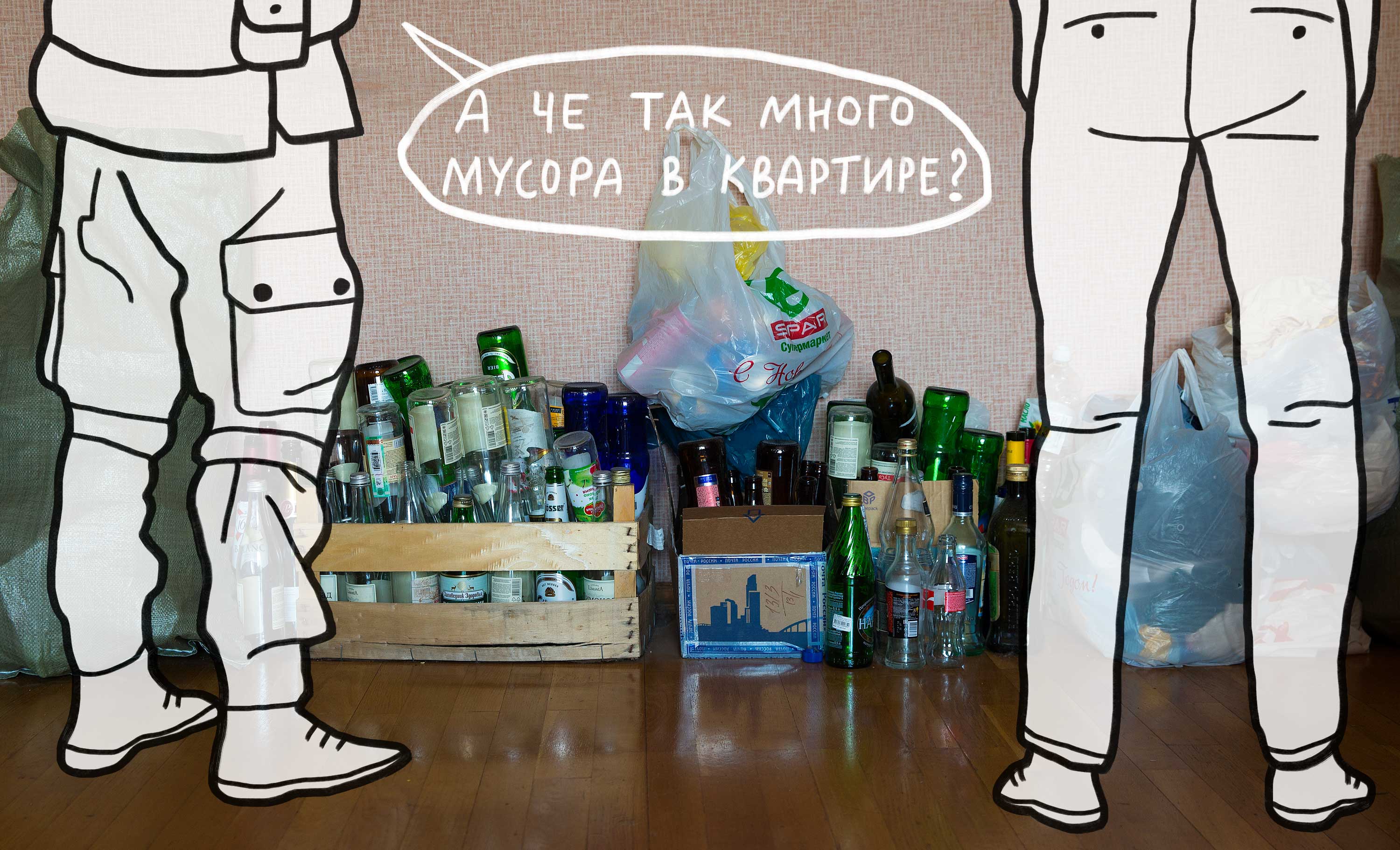 6:40. Обнаружив у меня коробки со стеклом и мешки с пластиком — я раздельно собираю и сдаю мусор — оперативники были несколько озадачены. Копаться в бутылках и мешках они поленились.