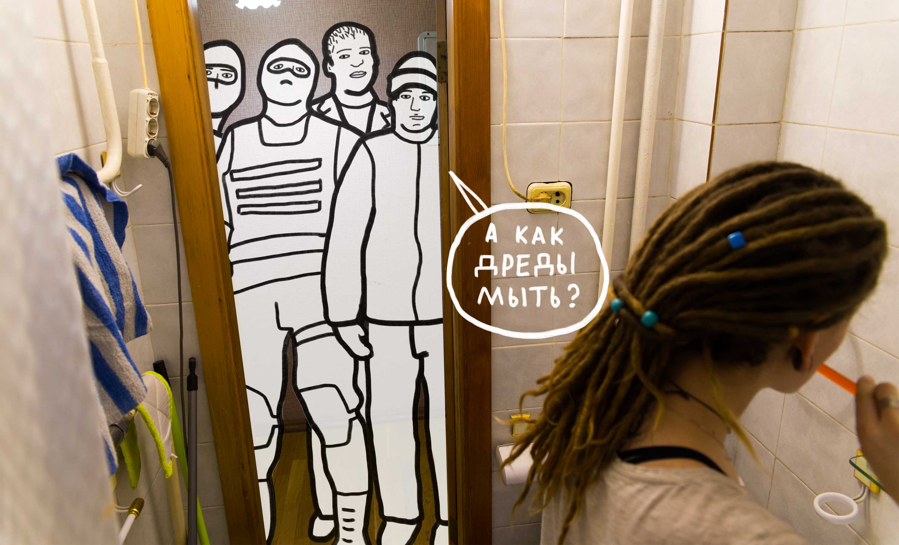 В Иркутске дело об «оскорблении чувств верующих» стало поводом к настоящей спецоперации с обысками и облавами на активистов. Ранним утром в субботу вооруженные автоматами бойцы СОБР ворвались и к местной журналистке Валерии Алтаревой. У девушки изъяли почти всю технику. «Вы знакомы с обвиняемым, у вас есть технические средства. Значит, он мог совершить преступление, используя ваши технические средства», — пересказывала она объяснения следователя. Вернувшись после многочасового допроса, Алтарева по минутам восстановила детали проходившего у нее обыска, а художница Мария Толстова превратила ее снимки и записи в комикс.