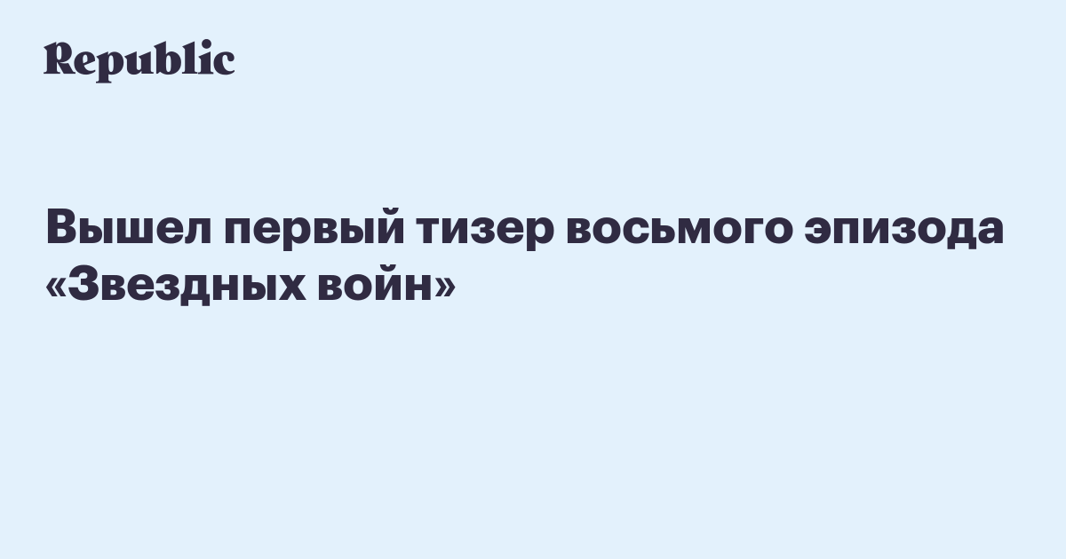 Вышел первый тизер восьмого эпизода «Звездных войн»