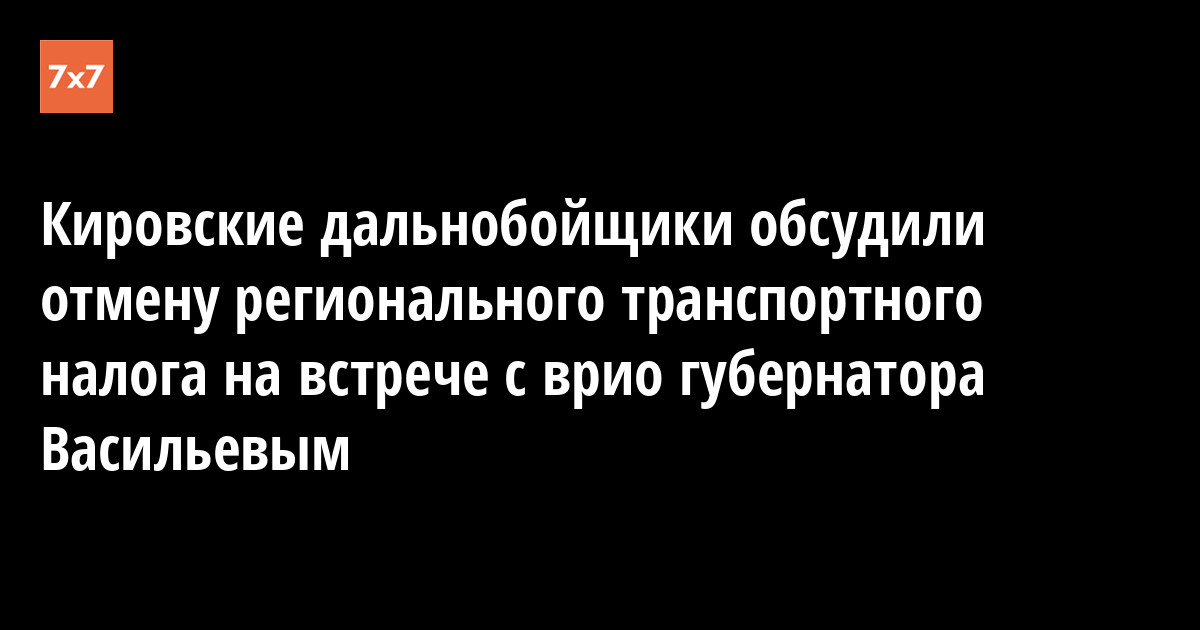 Кировские дальнобойщики, участники всероссийской стачки, встретились с исполняющим обязанности губернатора Кировской области Игорем Васильевым и предложили снизить или отменить транспортный налог в регионе, — об этом «7x7» 14 апреля рассказал председатель Союза грузоперевозок «Вятка» Валерий Сояк.