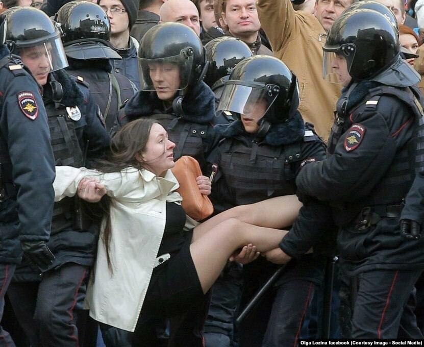Елена Фанайлова: "Случай в автозаке" решили мы назвать эту программу, с некоторой отсылкой к русской классике, не без иронии. За столом в студии Радио Свобода превосходный кейс одного автозака: мы видим тут и журналиста, и несовершеннолетнюю студентку, и звезду, буквально звезду протеста Ольгу Лозину, аналитика и выпускницу Физтеха, фотографии которой в белом плаще на руках у так называемых "космонавтов" обошли весь интернет. С нами Ольга Орлова, научный журналист и наша бывшая коллега. Признаюсь, что благодаря Ольгиному Фейсбуку я поняла, какой прекрасный автозак собрался 26-го марта и был повезен в Черемушкинское ОВД. Алена Нарвская, студентка лицея, присутствовала там, в этой замечательной компании, с которой адвокат Илья Уткин, Адвокатская палата Москвы и Московская коллегия адвокатов "Старков и партнеры", познакомился в ОВД "Черемушки" уже поздним вечером. Народ там продержали часов 8, я правильно помню?