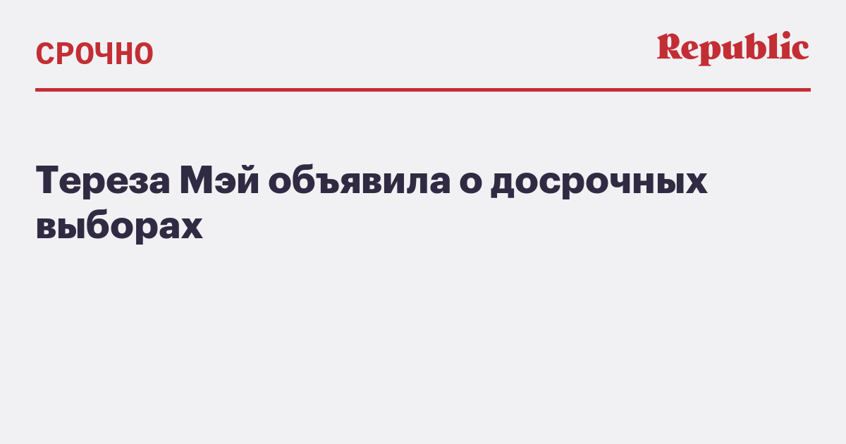 «Я пришла к выводу, что для гарантии сильного и стабильного руководства страной в ходе Brexit и после выхода Великобритании из Евросоюза следует провести выборы», – цитирует главу правительства Reuters.