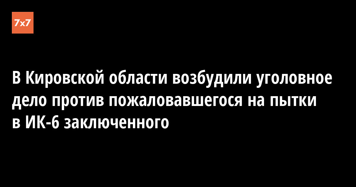 На осужденного Эдуарда Горбунова, заявившего о пытках в исправительной колонии №6 в городе Омутнинске Кировской области, завели уголовное дело по статье 306 Уголовного кодекса России («Заведомо ложный донос»), — об этом «7x7» сообщил зампредседателя Общественной наблюдательной комиссии Кировской области Артур Абашев, который побывал в ИК-6 с проверкой.