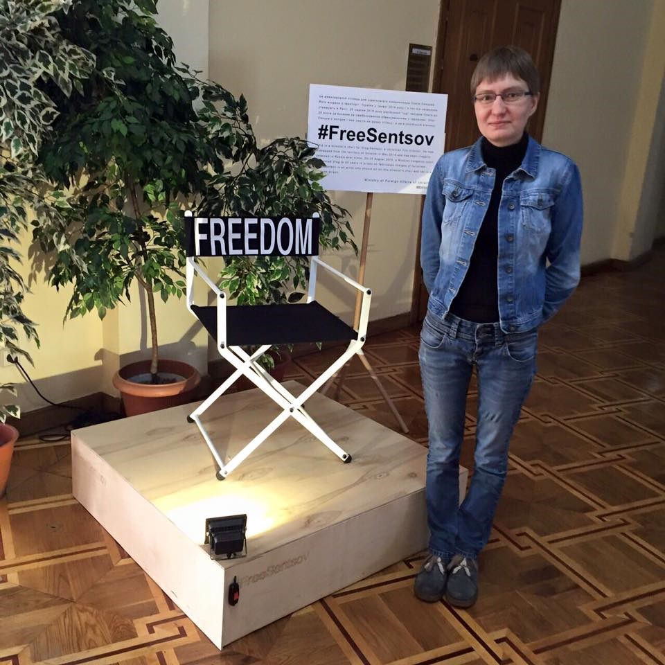 Недавно прошел кинопоказ фильма Аскольда Курова «Процесс», (прим.ред. — документальный фильм, посвященный суду над Олегом Сенцовым). В кинотеатрах перед фильмами идет ролик про Олега. К годовщине ареста будем делать какие-то акции. Сам Олег очень рад этой поддержке, он знает обо всех акциях. Добавлю, что самостоятельно я никакие акции не провожу, мне помогают другие активисты.
