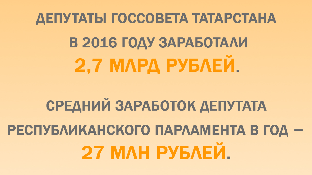 В среднем парламентарии Татарстана заработали по 27 миллионов рублей.