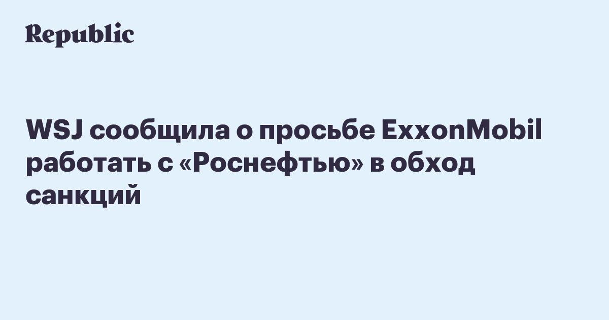 Компания ExxonMobil «в последние месяцы» обратилась в Министерство финансов США с просьбой разрешить ей продолжить совместный проект с «Роснефтью», передает Wall Street Journal со ссылкой на источники, знакомые с ситуацией.