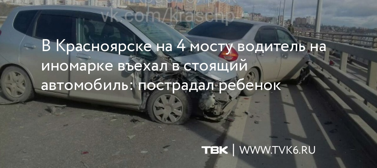 В Красноярске на 4 мосту водитель на иномарке въехал в стоящий автомобиль: пострадал ребенок