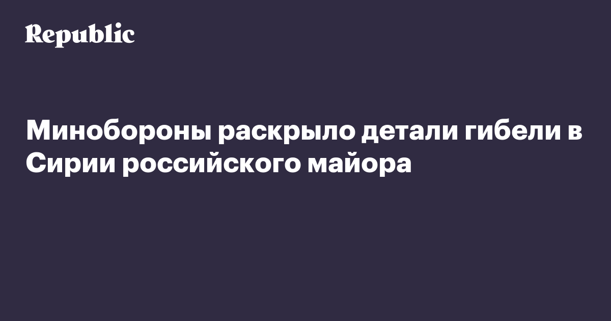 Минобороны раскрыло детали гибели в Сирии российского майора