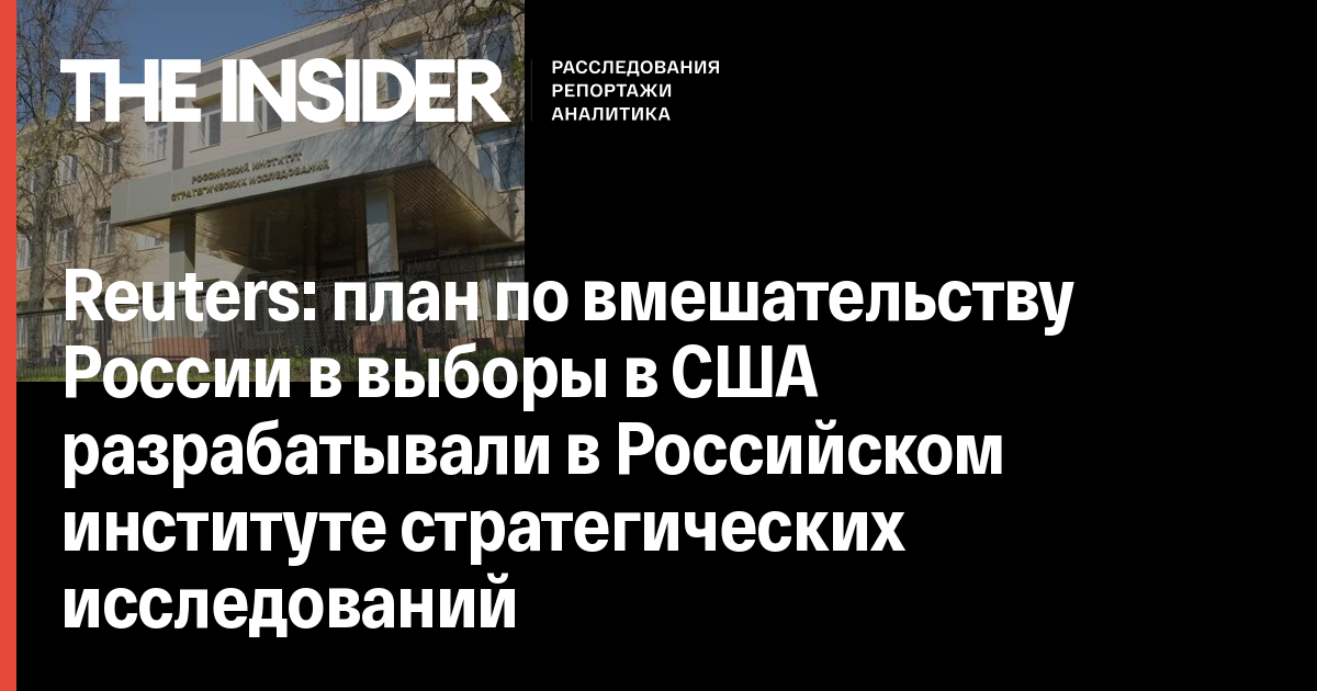 Работа над планом по вмешательству в выборы президента США велась в Российском институте стратегических исследований (РИСИ). Об этом пишет Reuters со ссылкой на нескольких бывших и действующих американских чиновников.