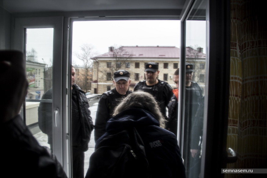 Кто-то зовет полицию — в квартиру заходят двое полицейских, предлагают разобраться на улице. Противостояние на подоконнике длится долго, но ни к чему не приводит. Люди расходятся.