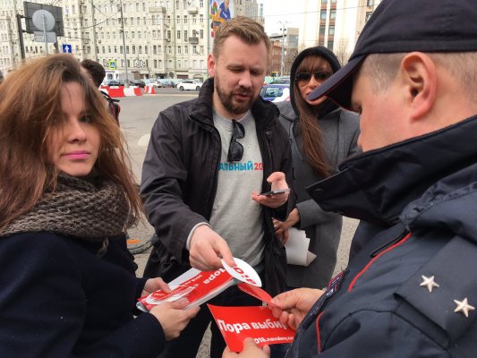 Пятерых активистов задержали за раздачу наклеек в рамках предвыборной кампании Навального