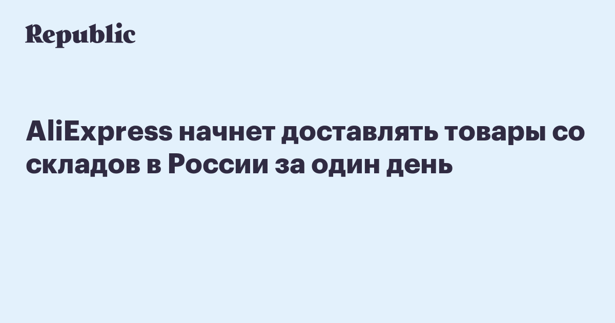 Пользователи раздела «AliExpress Молл» китайского ритейлера AliExpress смогут получать товары от российских продавцов на следующий день после заказа. Об этом представитель компании рассказал «Коммерсанту».