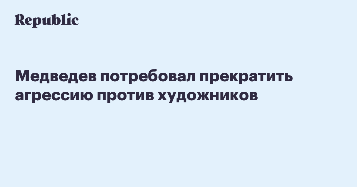 «Вместо принципов, убеждений, уважения к чужому мнению и творчеству появляется агрессия и нетерпимость, и мы эту агрессию видим. Эта агрессия иногда воплощается в преступные деяния. Иногда сводится к преследованию автора, произведение которого еще никто не видел», – сказал Медведев.