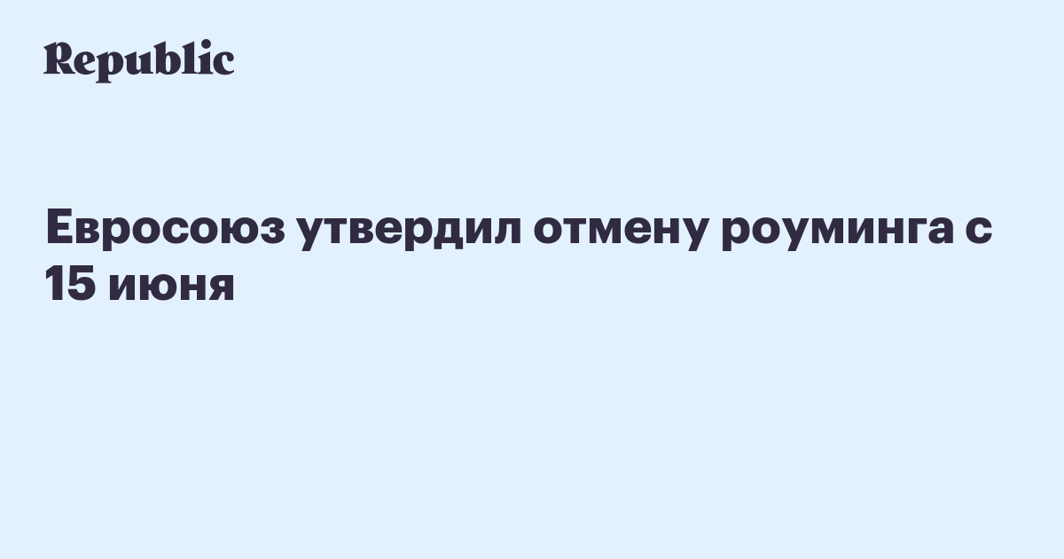 Для жителей Евросоюза отменят роуминг на территории всех стран союза с 15 июня. Об этом говорится в решении совета ЕС.