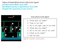 Стэнфордские студенты предложили иной подход к обучению. Чтобы ускорить процесс обучения, они решили сначала научить нейросеть понимать команды, написанные естественным языком, а для обучения использовали данные в виде пар команда - скриншот действия игрового персонажа. В качестве среды разработчики выбрали игру "Месть Монтесумы", которая часто используется для тренировки искусственного интеллекта. Особенность этой игры состоит в том, что в ней редко встречаются "награды", необходимые для успешного прохождения, и поэтому искусственному интеллекту трудно понять, какие действия ведут к победе.