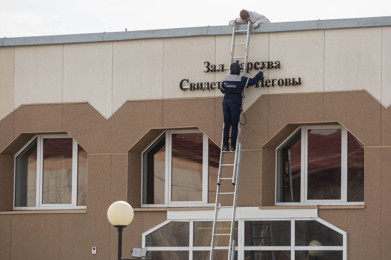 24 апреля 2017. C сургутского офиса религиозной организации «Свидетели Иеговы» снимают вывеску в связи с запретом их деятельности на территории России.Фото: Алексей Андронов/URA.RU/ТАСС Властям придется решать — либо идти на массовые аресты руководителей и активистов организации — и отправлять сотни и тысячи человек в лагеря, что в итоге будет способствовать росту авторитета и распространению движения, как в советское время. Либо точечно сажать тех, кто, по мнению ФСБ-МВД, представляет «особую опасность», и закрывать глаза на фактическое продолжение деятельности организации.