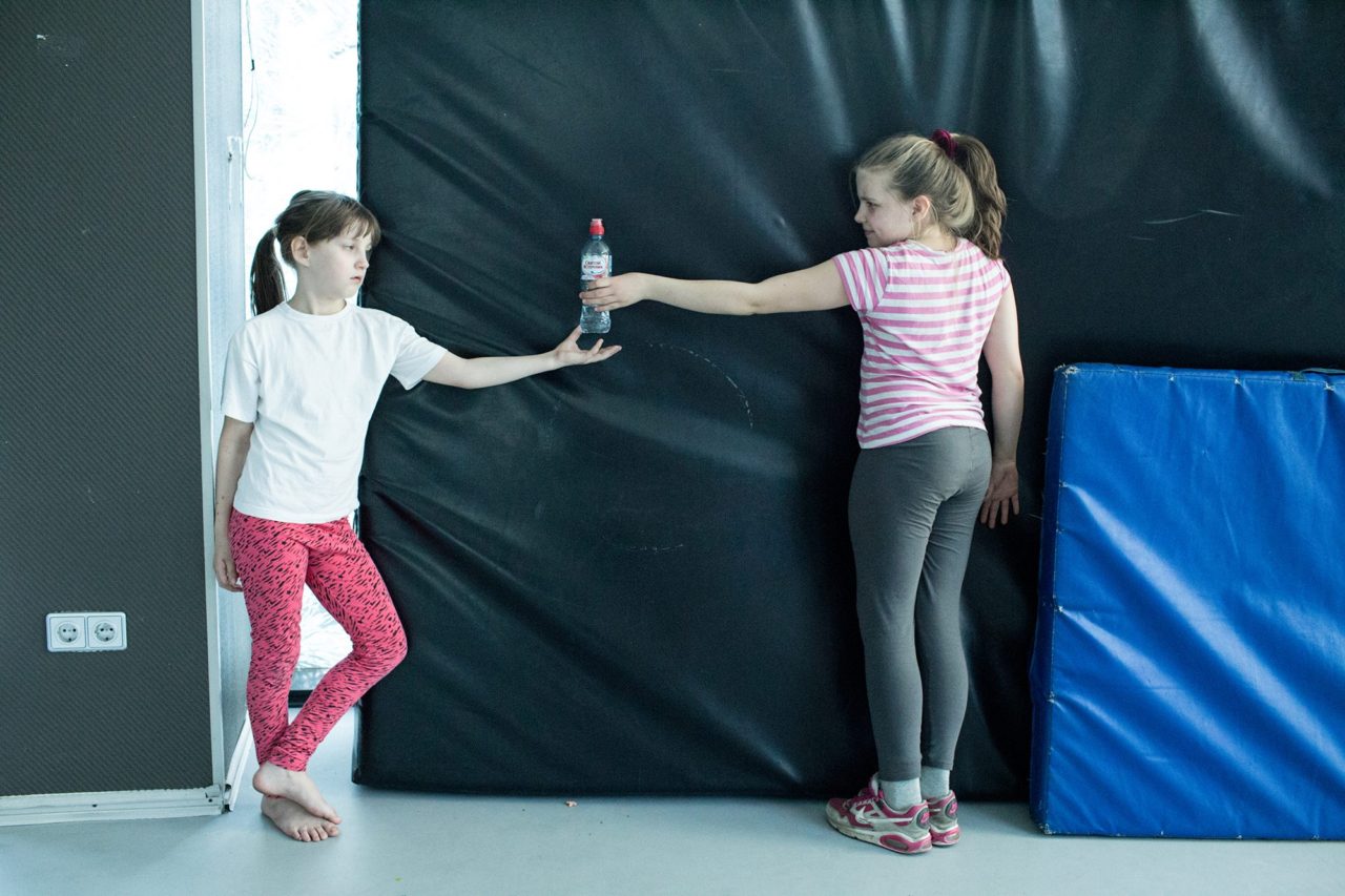 Настя (старшая сестра) во время тренировкиФото: Елена Михайлова для ТД В октябре, в одну из таких затянувшихся репетиций, сотруднице цирка Тасе позвонила взволнованная мама с вопросом: «Где же девочки?» Их тут же отпустили домой, поняв, что еще чуть-чуть, и будет уже очень поздно. Живут они рядом, поэтому побежали до дома сами. А мама не открыла им дверь.