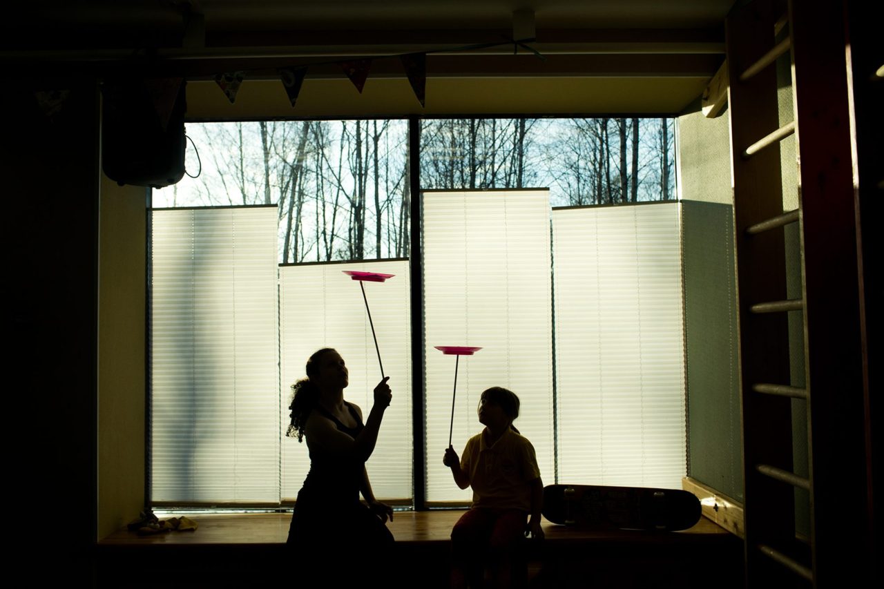 Ребята крутят тарелки в перерыве на репетиции; Саша (младшая сестра) — справаФото: Елена Михайлова для ТД