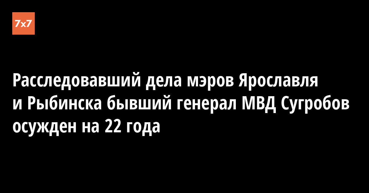 Расследовавший дела мэров Ярославля и Рыбинска бывший генерал МВД Сугробов осужден на 22 года
