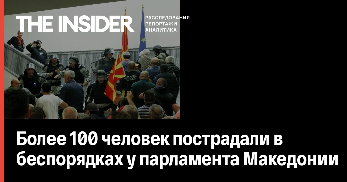 По меньшей мере 100 человек, в том числе 22 полицейских и трое депутатов Народного собрания (парламента) Македонии, пострадали в ходе беспорядков в здании парламента. Об этом сообщает «Интерфакс» со ссылкой на сербский телерадиоканал РТС.