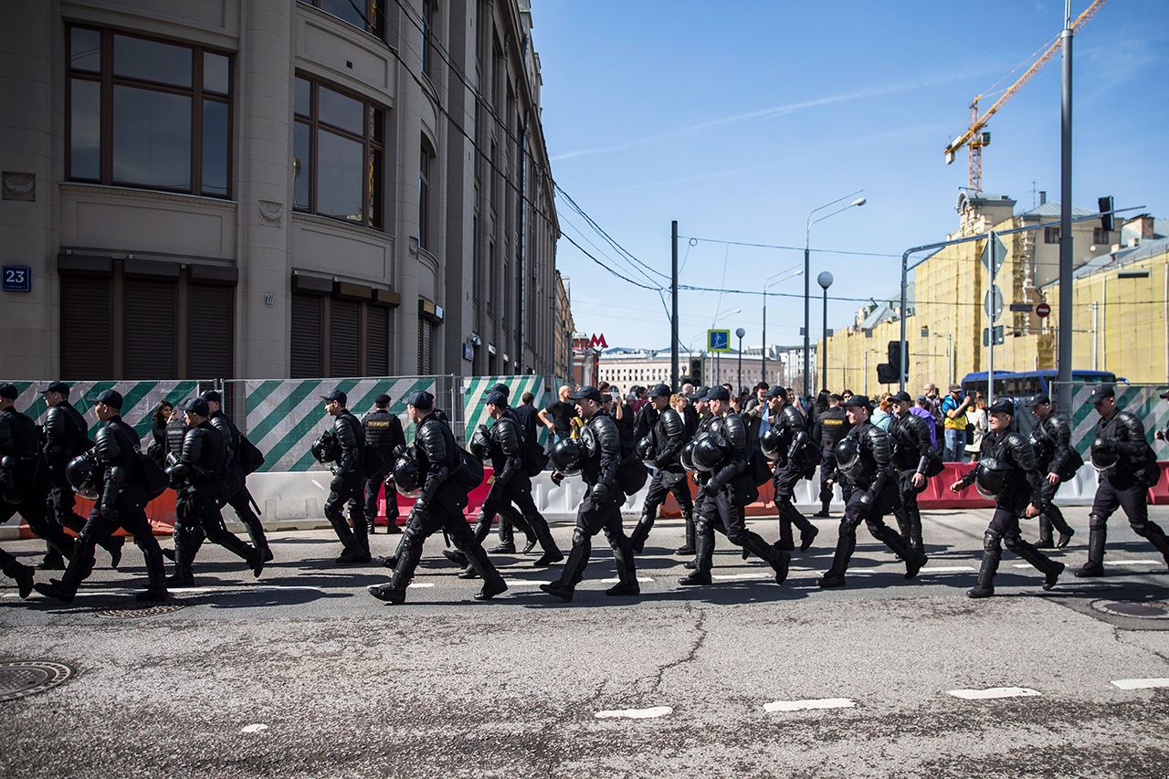 За несколько часов до начала московской акции, заявленной на два часа дня у здания администрации президента, на Славянской площади уже стояли ряды полицейских грузовиков и автозаков. В 13:30 перед памятником Кириллу и Мефодию собрались около ста участников; столько же было и журналистов. Средний возраст собравшихся, по оценке корреспондента «Медузы», был в районе 35 лет.