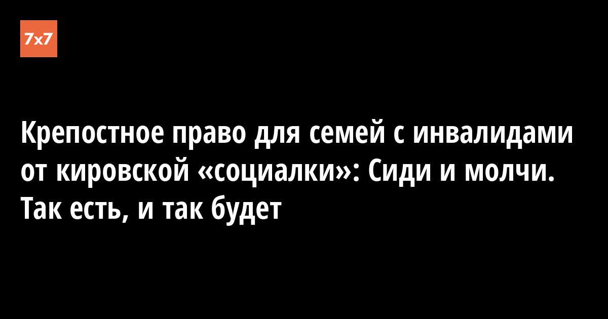 Крепостное право для семей с инвалидами от кировской «социалки»: Сиди и молчи. Так есть, и так будет