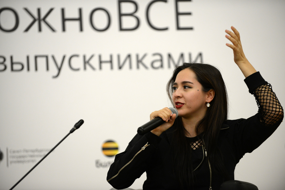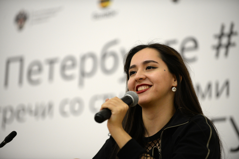 Девушка из зала: Ты начинала с видео в инстаграме, сейчас замахнулась на Ледовый. Как ты видишь в дальнейшем развитие своего творчества?