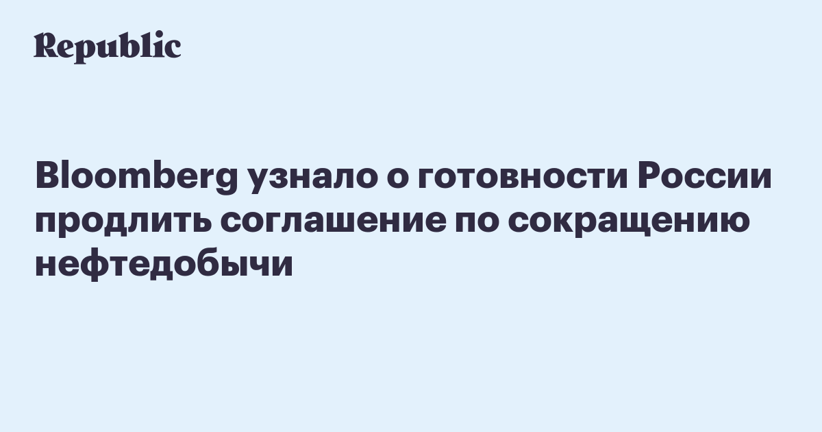 Bloomberg узнало о готовности России продлить соглашение по сокращению нефтедобычи