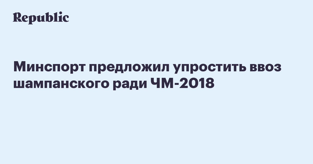 Министерство спорта России предложило упростить правила импорта шампанского в страну в связи с проведением Чемпионата мира по футболу 2018 года. Уведомление о начале разработки соответствующего законопроекта опубликовано на портале проектов нормативных правовых актов.