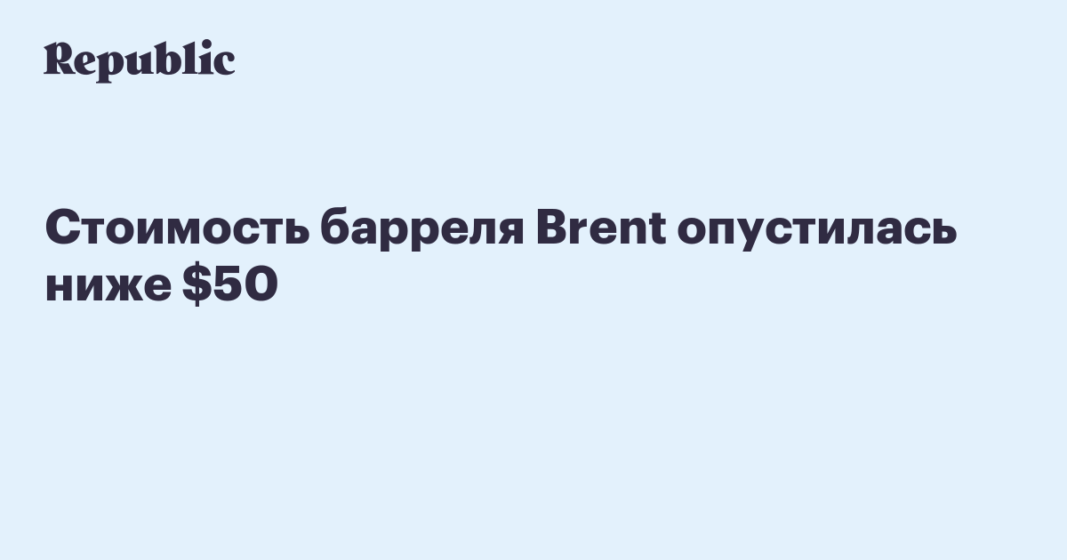 Цена на нефть марки Brent опустилась ниже $50 за баррель впервые за полтора месяца. Об этом свидетельствуют данные торгов на бирже ICE.