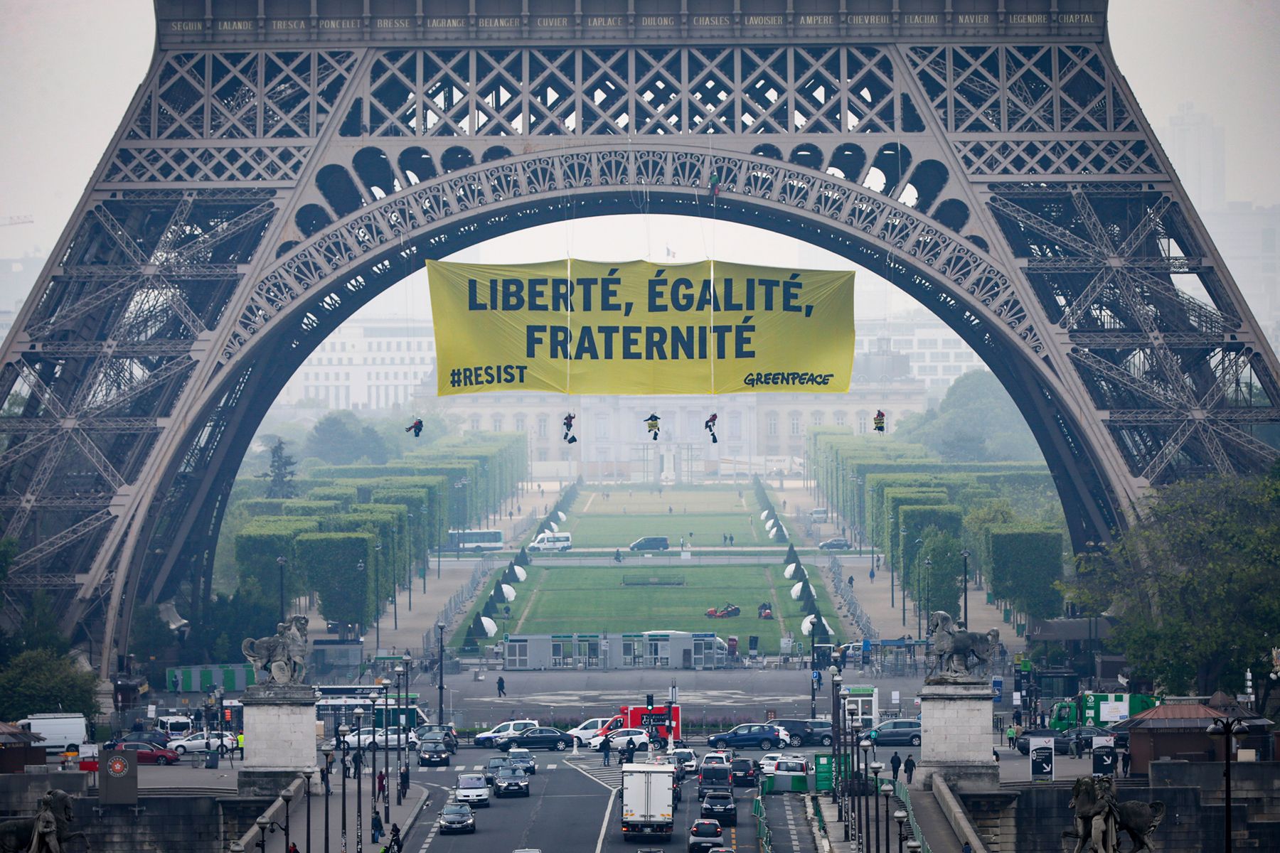 «Свобода, равенство, братство». Акция Greenpeace против Марин Ле Пен