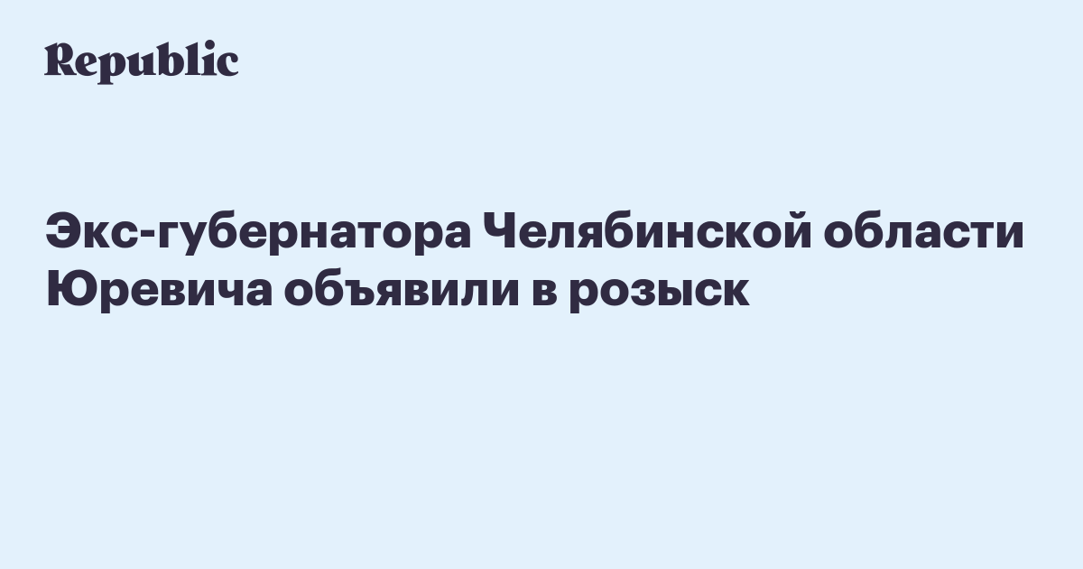 Экс-губернатор Челябинской области Михаил Юревич объявлен в международный розыск. Об этом говорится в сообщении Следственного комитета.