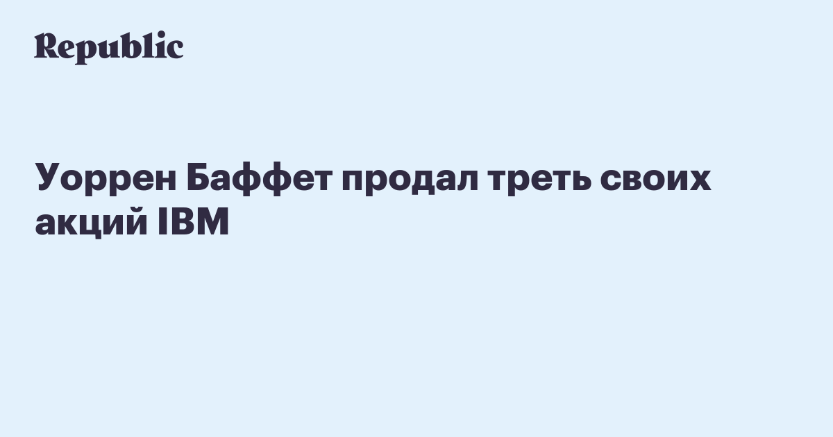 Баффет пояснил, что пересмотрел свою позицию относительно компании. По его словам, когда стоимость акций IBM достигла $180, он продал примерно третью часть из них.