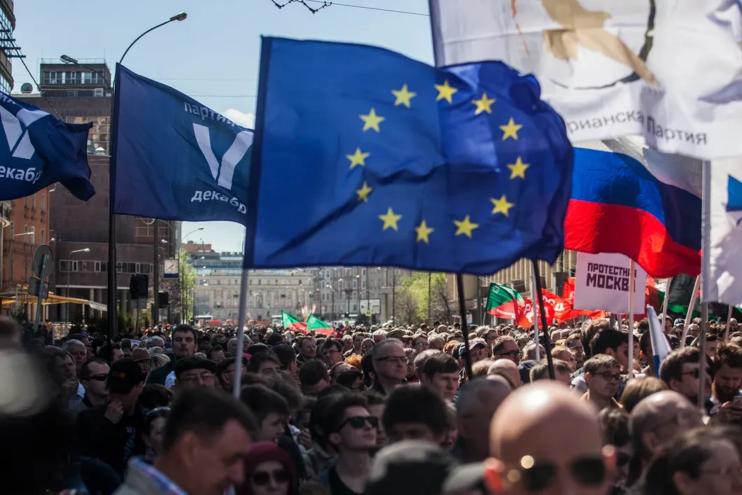 На проспекте Сахарова прошел митинг в пятую годовщину майских протестов на Болотной площади. В мероприятии, по данным организаторов, участвовало до трех тысяч человек. Над проспектом смешались флаги националистов и Евросоюза, белые ленточки, куртки «Надоел», значки «Немцов мост» и наклейки «Навальный 20!8».