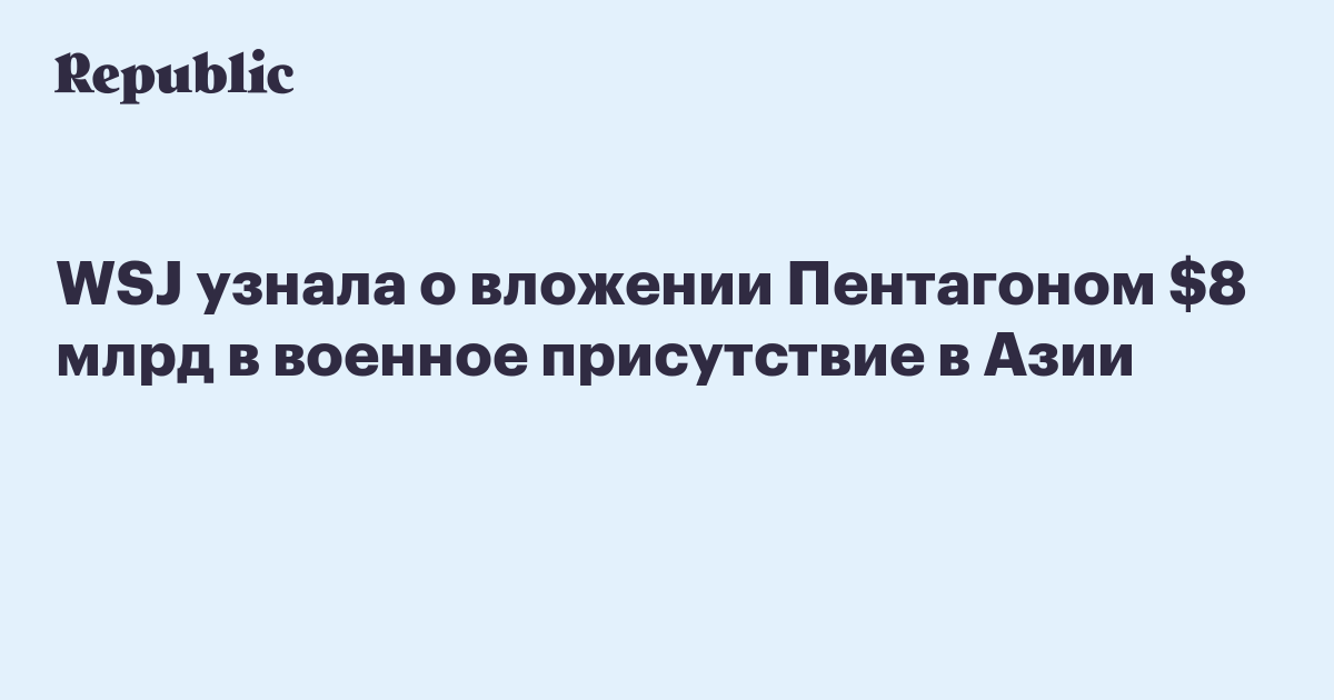 WSJ узнала о вложении Пентагоном $8 млрд в военное присутствие в Азии