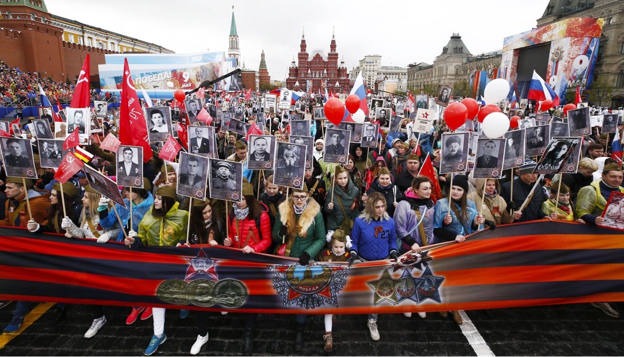 К моменту, когда люди, начавшие маршировать от метро «Динамо», дошли до Красной площади, самая официальная часть марша уже закончилась — в три часа дня по площади прошел президент России Владимир Путин с портретом своего отца; рядом с ним шествовали возглавляющий попечительский совет «Бессмертного полка» Василий Лановой и актер Михаил Ножкин. Через час после этого неподалеку от Мавзолея водили импровизированный хоровод сто человек с флагами Армении и Нагорного Карабаха. «Этот танец называется кочари, — пояснил корреспонденту один из участников акции. — Мой дед дошел до Берлина вместе с советской армией, и тогда — как мы сейчас — он с другими армянами танцевал кочари, отмечая победу у Рейхстага. Есть даже видео. Что скажут о флаге Нагорного Карабаха азербайджанцы, которые сюда пришли? А мы их спрашивать, что ли, должны?»