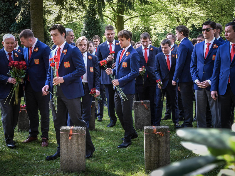 Российские хоккеисты возложили цветы к могилам советских солдат в Германии